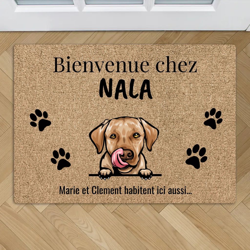Paillasson personnalisé chien & chat – « Bienvenue chez » + prénoms